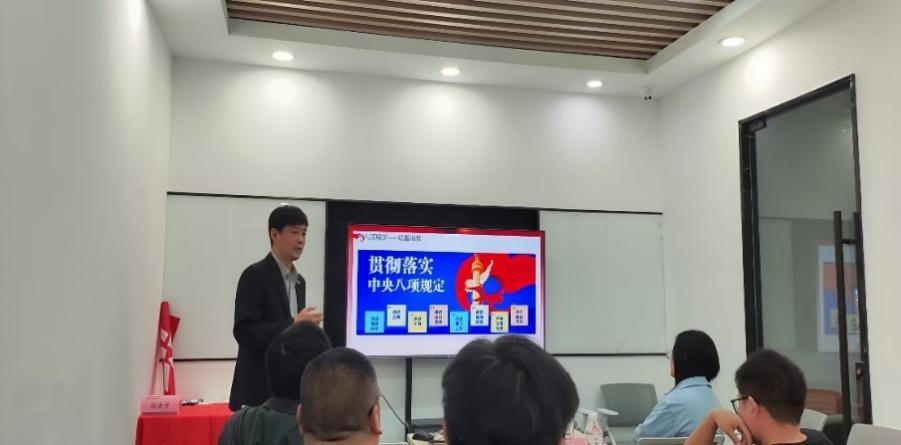 市流动人才党委委员、青跃文化党支部书记刘铉表示,中央八项规定精神是对每一个基层党员乃至甚至人民群众的作风引领,我们要增强自己的思想觉悟,同时要有行动自觉性,基于当前经济形势,保持勤俭节约,加强务实作风。